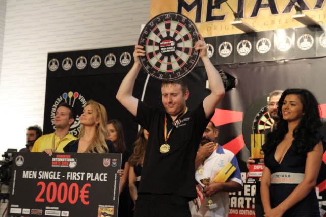 In male competition the 2,000 euros 1st price was taken by the british Joe Murnan against slovac Peter Martin. Score was 6-2. Places 3 were occupied by Floros Oikonomou ( Cyprus) and Vlad Popa (Romania), the last one being the first time ranked on an international open with both BDO and WDF classification.