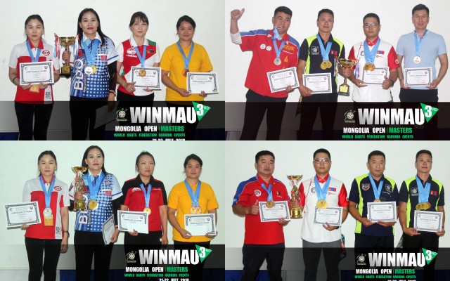 Winmau Mongolia Open and Masters were played 21-22/07/2018 in Ulaanbaatar, Mongolia. Mongolia Open with 55 men and 28 women. Mongolia Masters with 43 men and 18 women. WDF Tables updated with these results 08/08/2018